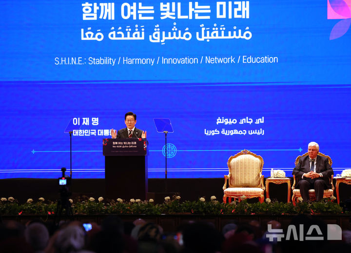 이 대통령은 ‘SHINE’ 구상의 의미에 대해 “함께 하는 관여를 통해 안정(Stability)과 조화(Harmony)에 기반한 한반도와 중동의 평화를 구축해나가겠다”고 했다.